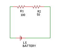 + R2) * I が電池の電圧 V に等しくなります。電源から見た場合、二つの抵抗の直列回路は R1+R2 の抵抗となります。