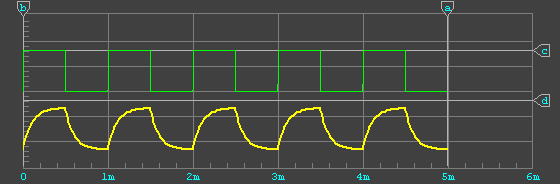 抵抗を通してコンデンサにパルス(5Vと0Vを繰り返す)を加えます。