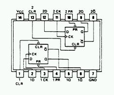 14ピンのパッケージに二つのD型FFが組み込まれています。