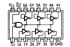 トライステート素子の例を示します。トライステート出力のシンボルは、制御線が上または下から入ります。