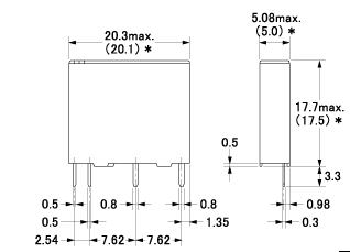 リレーの端子は、一般の電子部品のように 2.5m ピッチになっていないものが多いので注意してください。2.5mピッチでないと、基板の穴あけが必要になります。