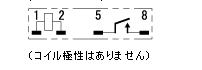 下図は、端子の配置で1ピント2ピンにコイルが接続されています。5,8 ピンがスイッチの接点です。
