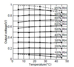 湿度に対する出力電圧は、ほぼ、直線状です。ただし、周囲温度の依存性はありますから、精度が必要な場合、