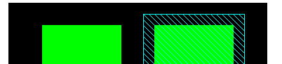 上下のランドを接続するための穴です。穴の内部は導通のため金属箔をメッキします。穴の内部にレジスタが入らないよう、パッドより小さなレジストをマスクする円を入れます。最小のレジストは、穴0.3、パタン0.6、レジスト0.4となります。