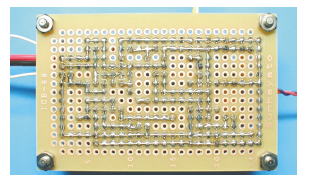 部品面から部品を差込、半田面で配線、半田付けします。下図のように、端子のない場所でも、基板に配線を半田付けすると故障の少ない基板が制作できます。