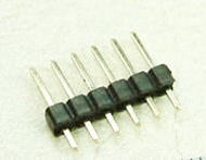 基板間の接続には、ピンヘッダ(左)とピンソケットを利用することができます。両者とも、長いピンで販売され、必要なピン数で切断して利用できます。