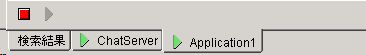 Jbuilderの下のタブに実行中のアプリケーションが表示されます。上のstopとplayのアイコンでプログラムの実行、停止ができます。タブを右クリックすると、タブおよび実行プロセスの削除ができます。chatServerを選択すると、serverのメッセージを見ることができます。