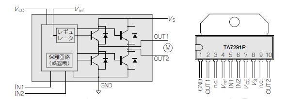 ここでは、小型のDCモータの回転制御を行います。小型DCモータは玩具にもよ良く利用されています。ここで利用するモータは適正電圧1.5V〜3V、電流数百mA程度です。
