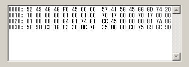 番地に波形データのバイト数が記録されています。この2つのバイトを合成して、2バイト整数にします。