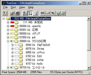 FileMenuからSelectDirectory(ディレクトリ選択)を選択し、フォルダ(ドライブ)を選択する。これで、処理を開始し、各フォルダのサイズを表示する。フォルダの展開をすると、内部のフォルダのサイズも表示できる。