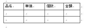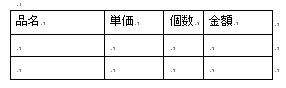 表のマスをクリックし、そこに「品名」、「単価」などの文字を記入します。