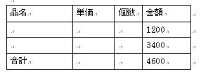 「単価」の右の縦の罫線にマウスを合わせます。カーソルが 縦棒 に変わったら、マウスを左にドラッグし、「単価」の幅を変更します。同様に、個数、金額の幅を適当に調整します。