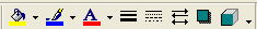 図形にも文字とどうよう、背景、枠、図に、図形メニューから色を設定できます。また、擬似的な3次元図形も作成できます。