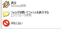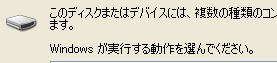 カメラ(または)SDカードを接続すると、PC(パソコン)に、新しいドライブ(装置)が接続されたことになります。以下のメッセージが出ます