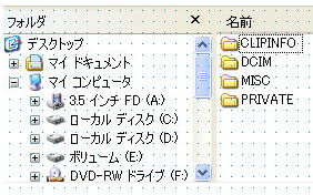 下図右のようなフォルダが表示されます。DCIMフォルダをクリックすると、カメラの機種の名前がついたフォルダが出ます。これをクリックすると、画像ファイル(名前)が表示されます。