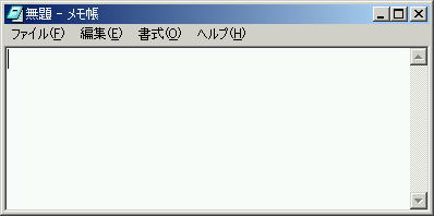 マウスポインタをメモ帳のウインドウの中に入れ、左ボタンをクリックします。すると、"I"型のマーク(ポインタ)が画面左上に現れ点滅します。この状態で鍵盤を押すと、押した文字が文字カーソルの左に入り、文字カーソルは右に移動します。