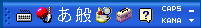 を押します。画面下のタスクバーの右端に下のような"あ"の表示が現れたら、ローマ字入力と漢字変換が可能になります。