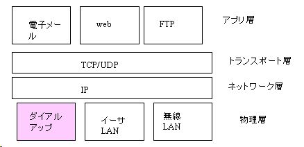 ダイアルアップは、ネットワークでは物理層に対応します。PPPプロトコルなどでダイアルアップサーバーに接続した後は、IP層に接続します。