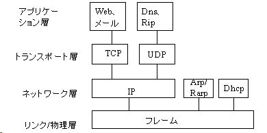 ここでは、TCP/IPプロトコルを中心に説明しますが、これは以下のようにOSI参照レベルに対応する5層で構成されます。データリンク層までは、すでに紹介済みです。
